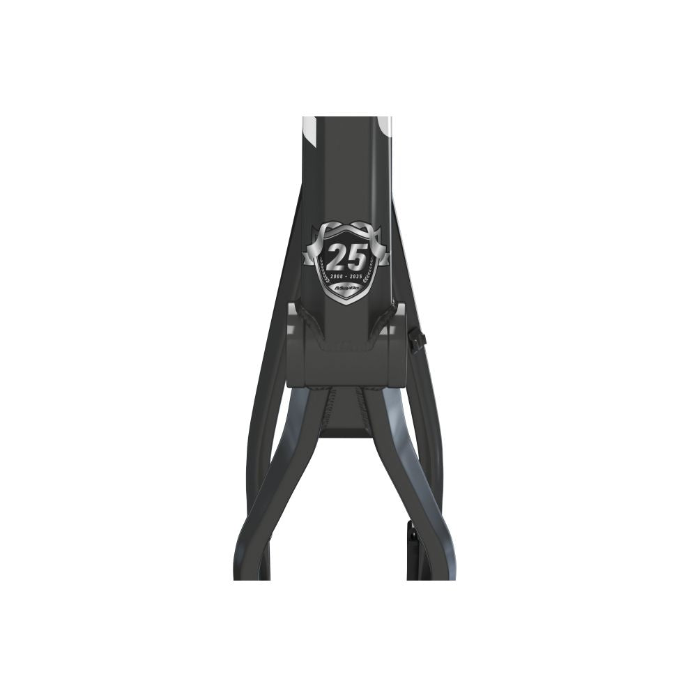 La gamme 2025 conserve les mêmes caractéristiques que la gamme 2024/2024.5. En ce qui concerne le freinage, ce cadre est uniquement compatible avec les étriers au standard Postmount (PM). Cela signifie que l'étrier de frein est fixé sur un adaptateur IS to PM et non directement sur le cadre. Pour les petites tailles, une patte de frein à disque prévue pour les pattes ouvertes de 10 mm est incluse avec l'achat du cadre. Pour les grandes tailles, un kit de plaques pour 10/15mm est fourni avec le cadre.