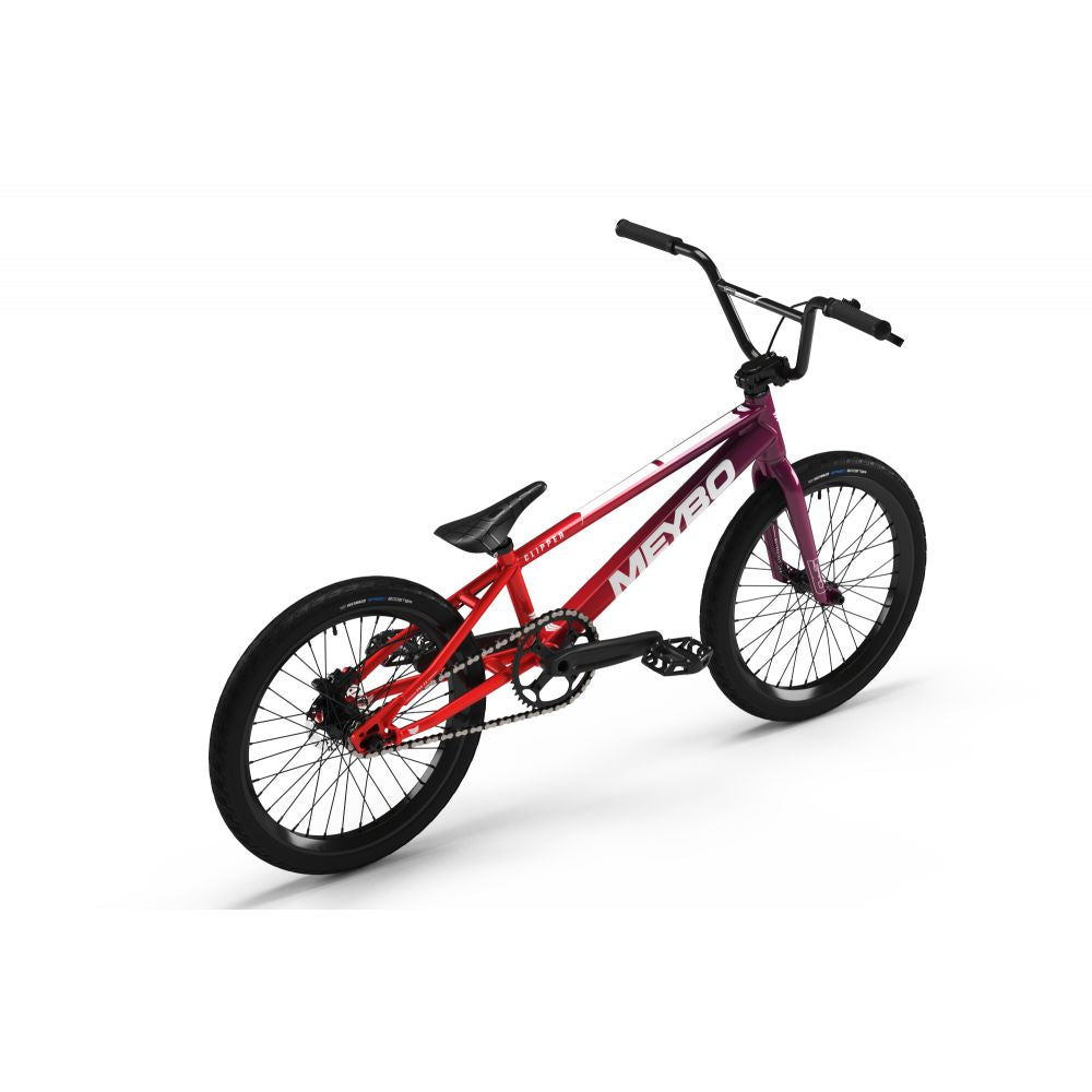 Le Clipper est équipé d'un cadre en aluminium basé sur la géométrie du cadre Meybo Holeshot, une géométrie testée et approuvée par de nombreux pilotes d'élite. On retrouve également une fourche et un guidon SD en CrMo, une paire de roues en aluminium avec des jantes à double paroi montées sur un moyeu arrière à 180 points d'engagement, des pneus Vee Tire Speedbooster, une chaîne KMC E8 et de nombreux autres composants conçus pour la pratique du BMX Race (plus de détails dans les spécifications).