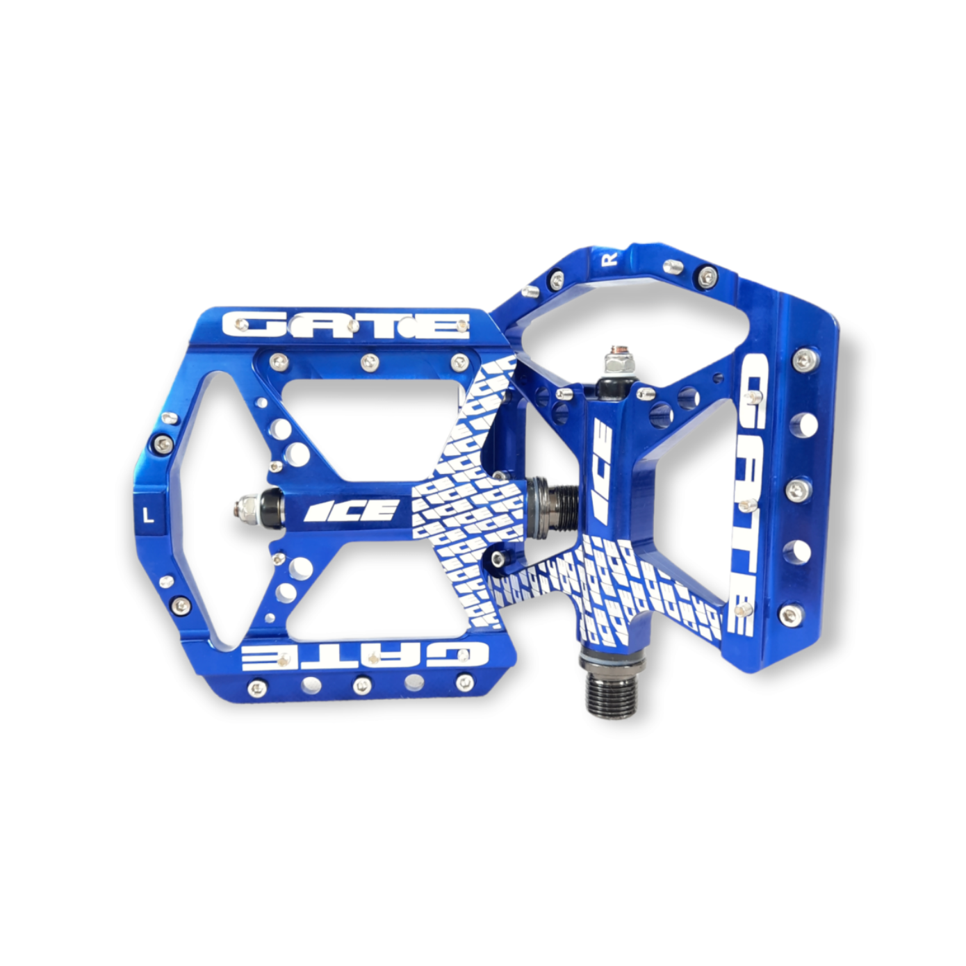 Pédales plates haut de gamme ICE GATE BMX/VTT pour adulte en alu CNC avec 12 picots par face.