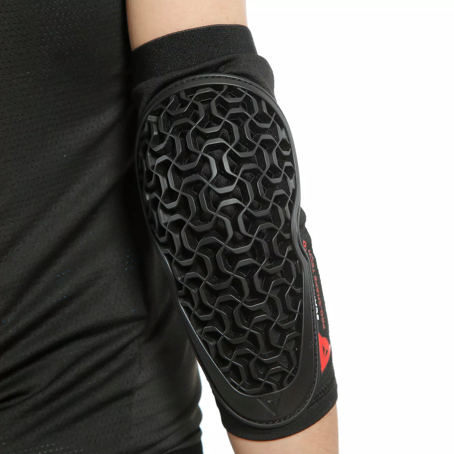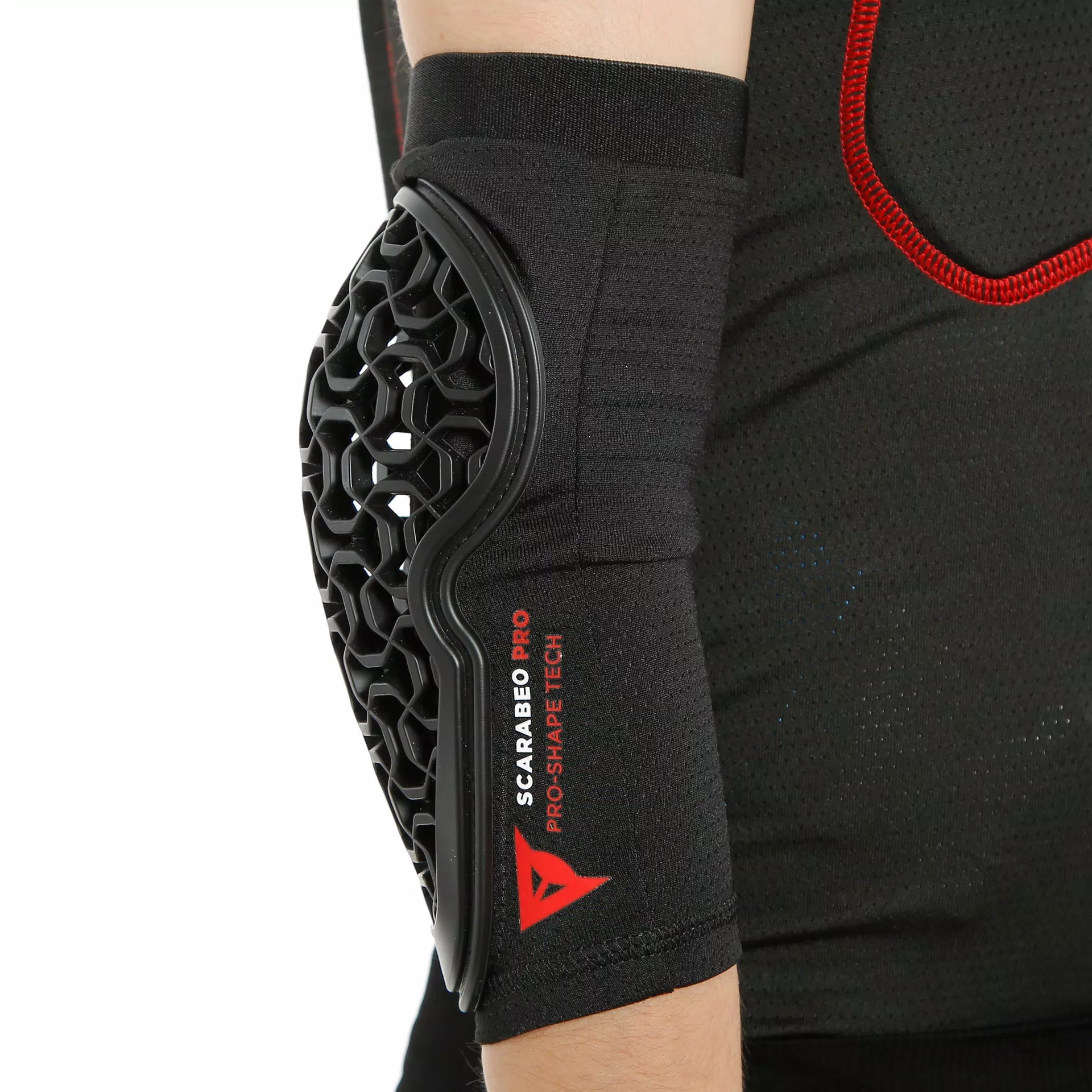 La ligne Dainese Scarabeo met à la disposition des petits coureurs les technologies développées par les grands champions de VTT, utilisées dans les compétitions mondiales. Toute la sécurité des professionnels, pour protéger les athlètes de demain. La coudière Scarabeo est conçue autour de la protection Pro-Shape Scarabeo, inspirée par la géométrie des matériaux auxétiques présents dans la nature qui, en cas d’impact ou de sollicitation, se dilatent simultanément dans toutes les directions, augmentant ainsi la zone de couverture. La structure de la protection permet une flexibilité et une adaptabilité maximales à toutes les positions des bras, en suivant les mouvements du jeune coureur, aussi bien en phase de pédalage que de descente. Le Pro-Shape Scarabeo absorbe 83 % de la force d’un impact, ne transférant pas l’énergie d’un éventuel impact au coude. La surface de la protection est ouverte sur 55 % de sa surface, ce qui permet, avec le tissu extensible très respirant, une grande ventilation et un échange thermique optimal, même pendant les jours les plus chauds.